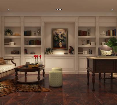 本方案以傳統的美式家具搭配白色墻板,給人古典而又溫馨的感覺。