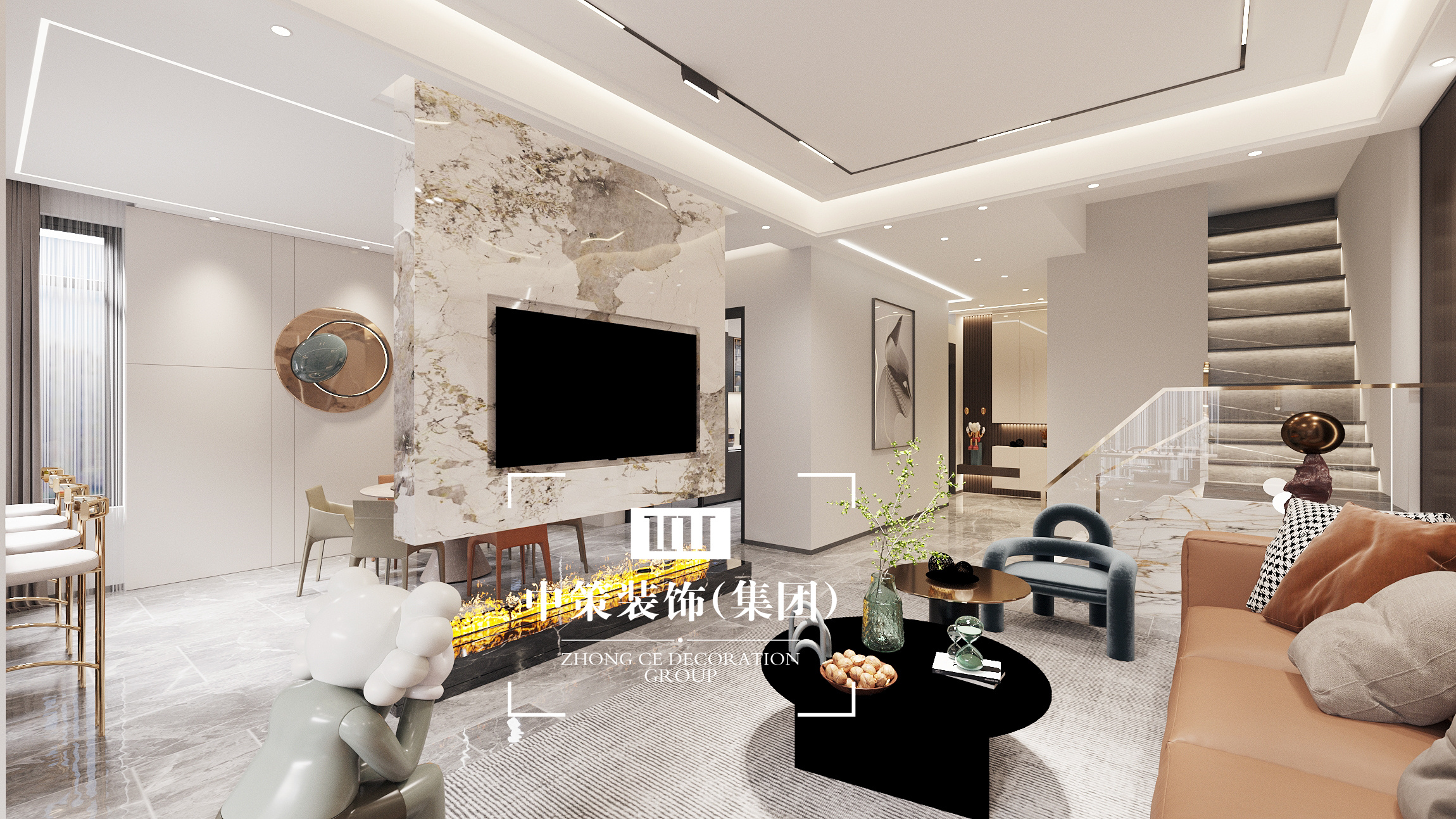 本案定義為休閑度假居家為一體的別墅居所,追求簡練舒適的生活態度,以不同材質本身的紋理體現裝飾效果。化繁為簡,舒適自然。