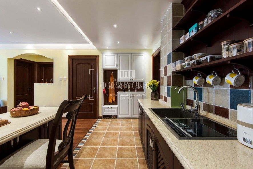 (1)本案以素雅簡潔的設計手法打造美式空間的古樸韻味,將簡潔與質樸與華麗緊密融合,相互貫通。整個空間以暖色為主局部彩色為輔,搭配木質感家具,打造出簡潔而優雅的的生活空間。 (2)根據美式風格的元素特點,設計師對原始戶型進行了新的規劃和定位,滿足空間的利用以及整體家居的舒適感。整體元素及色彩的運用都體現著設計對生活的理解。 空間闡述: 整體空間設計以美式特有的厚重感為主。開放式家居及島臺設計,加上帶有歲月滄桑的配飾充分突出了其設計的素雅天然感。整體空間的設計都以美式風格為主,感受業主的生活方式,空間流線及規劃都更人性化。