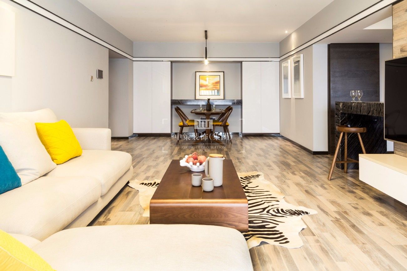 本案主要是現代風格,在中間融入了一些美式元素,整個空間以灰色為主,局部穿插了一些黃色和紅色,在視覺上形成一個純粹的沖擊感,讓整個家充滿溫馨感