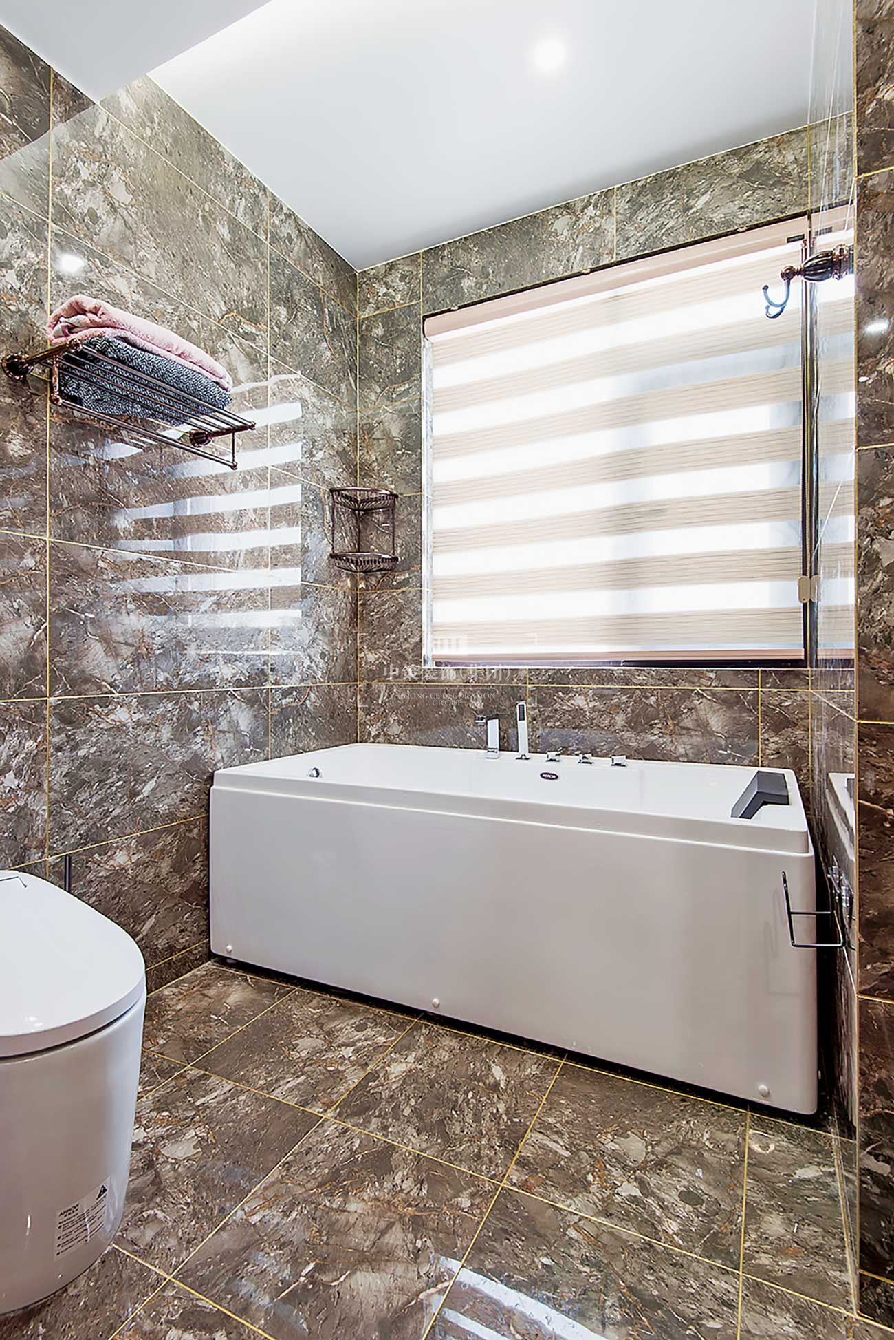 本案采用咖啡色的主色調,紋理清晰的地板,深色的家具,讓空間顯得沉穩而有氣質。