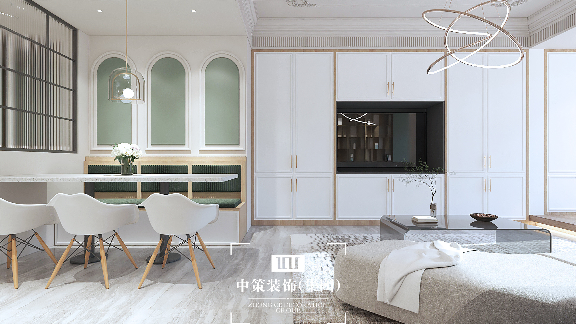 餐廳與客廳相連,整體色系一致,使得空閑銜接更具有連貫性。